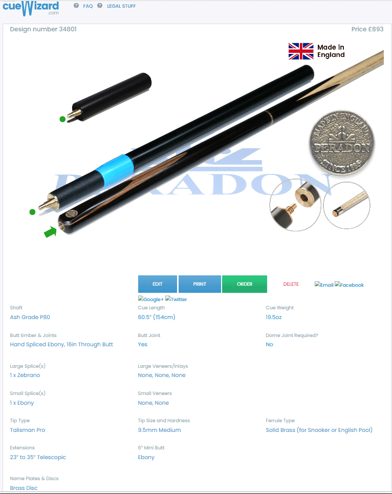 Peradon Cue Wizard. Bespoke Cue.