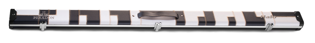 The Peradon Halo Black and White Patch Leather Effect 3/4 Cue Case is crafted from an aluminium construction and offer both maximum cue protection and superb looks. The upholstered exterior has a hard wearing leather effect creating a very eye catching and attractive cue case. The hinge is of course an integral part of the shape of the case making it extremely robust. The closing catches are of the finest quality with a highly polished chrome finish. The interior is black flocked foam to hold the cue securely in place and stop unwanted on movement of the cue inside whilst being carried.